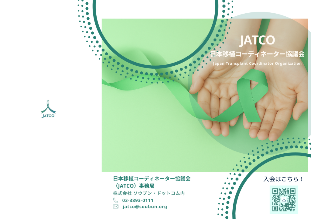 JATCOは、移植コーディネーター活動の発展と会員相互の資質向上を目指し、日本における臓器移植の進歩と普及に貢献することを目的とした学術・研究団体です。本邦唯一、ドナーコーディネーターとレシピエントコーディネーターが共存し、相互理解を深める場を提供しています。
