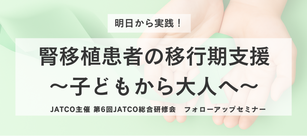 第59回日本臨床腎移植学会会期中、第6回JATCO総合研修会フォローアップセミナーが開催されました。テーマを「腎移植患者の移行期支援~子どもから大人へ~」とし73名… -